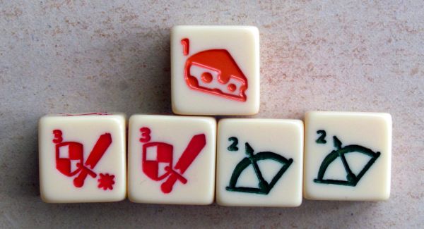Certains d’entre vous oublis l’essentiel du problème… Prendre des dès comme l’a proposé jabba ne règle pas le problème de lecture des dés sur les fiches. Mettre des petits traits discret sur une hache n’aidera pas à une meilleure lisibilité rapide du choix des dés sur la table et je ne parle même pas de la reproduction de ces traits sur les fiches… L’histoire des dague épée et hache en fonction de la puissance est plutôt bien si cela n’est pas trop illisible sur la fiche. Les petites griffures sur les arrêtes (l, ll, lll) étaient aussi très sympa, et visuellement sur la fiche ça se verrait bien aussi vu que ça irait sur la face de gauche et du dessus. (comme si le dé était coupé) Sur les dés physique, les entailles seraient présente sur chacune des arrêtes ou bien sur seulement 3 bien placé de façon a toujours voir les griffures quelque soit la position du dé. (même une griffure en bas du dé peut être visible). Quoi qu’il en soit ce dernier système conserve les haches comme symbole principal. Je vous ferrai un exemple ce soir après le taf.