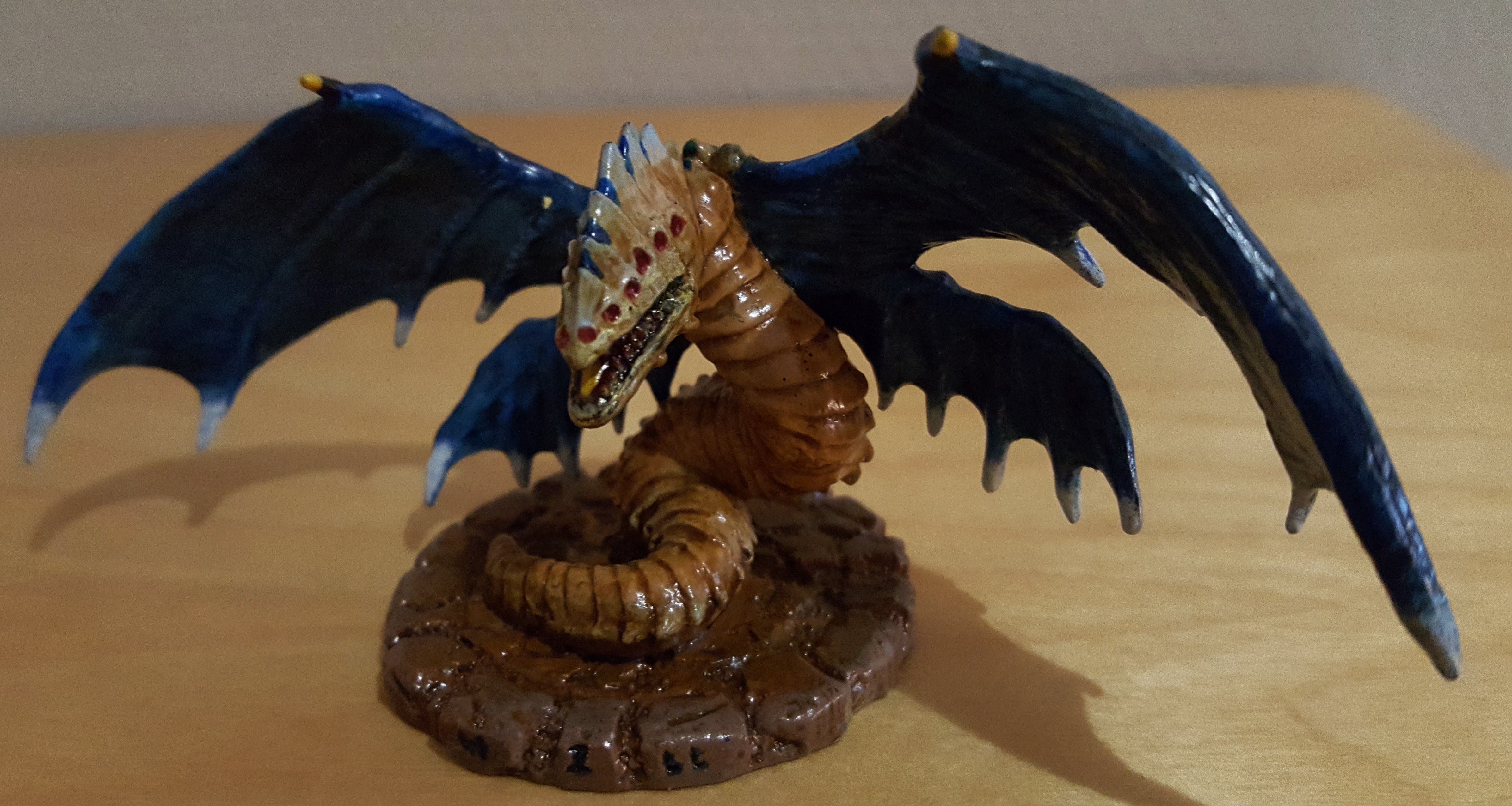 Je serai davantage allé (n'osant dire "j'irai" compte tenu du fait que le fil est plutôt dans ma main que sur mon pinceau ^_^) vers un dégradé de vert allant vers le sombre à l'arrière, de même que la chevelure en bleu-vert pour moins trancher et moins "humaniser" la figurine... mais ce n'est que mon humble point de vue.