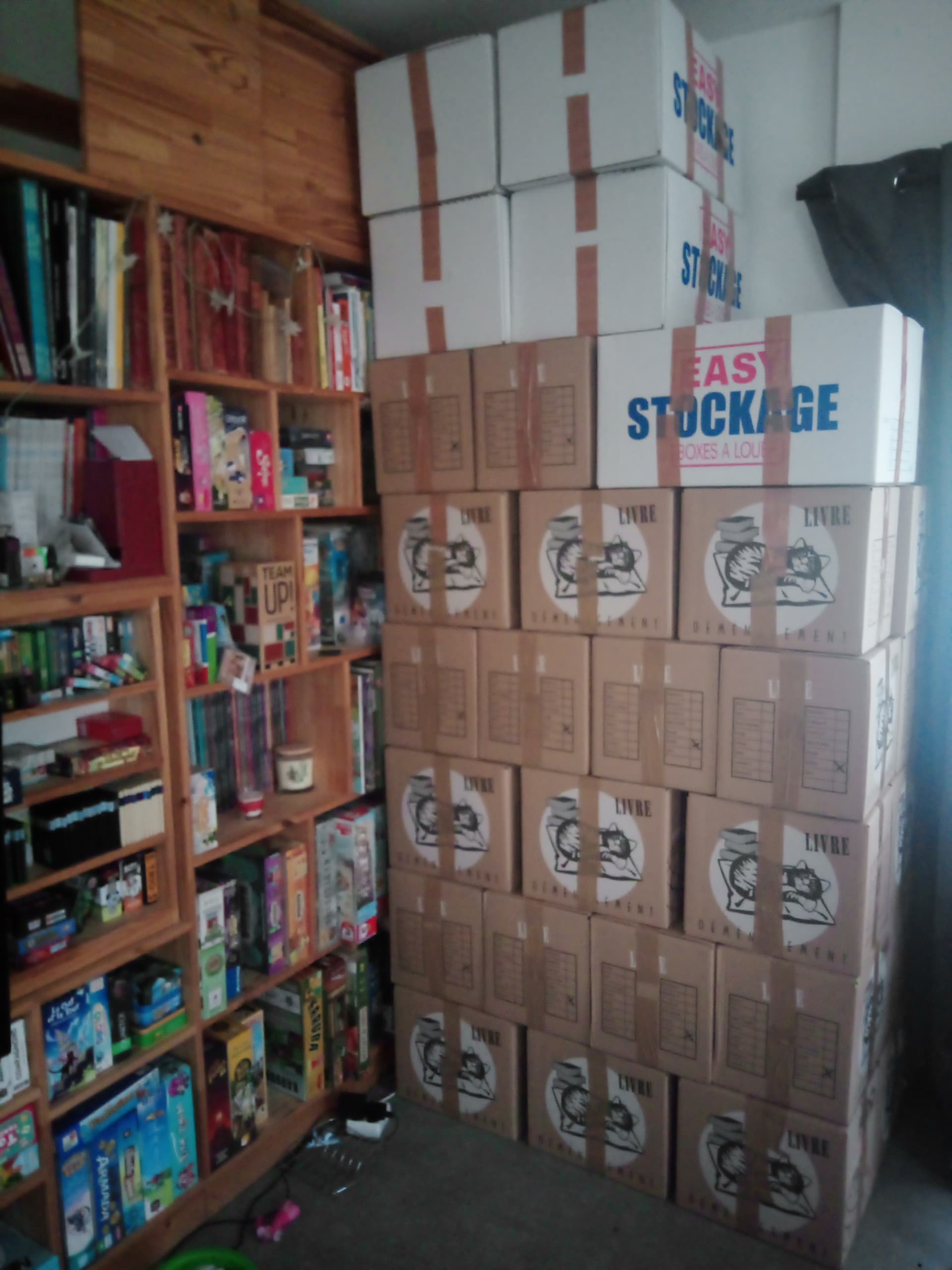 Je dois pas être loin de 2/3 de jeux emballés je vais devoir faire une autre pile chépaoù dans l’appart.