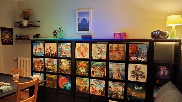 Oui c’est vrai, si tu te rappelles des jeux cachés derrière. J’ai hésité de le faire à la maison et puis finalement non. J’aime bien tout voir quand je cherche un jeu que je n’ai pas encore choisi. Après c’est beau.