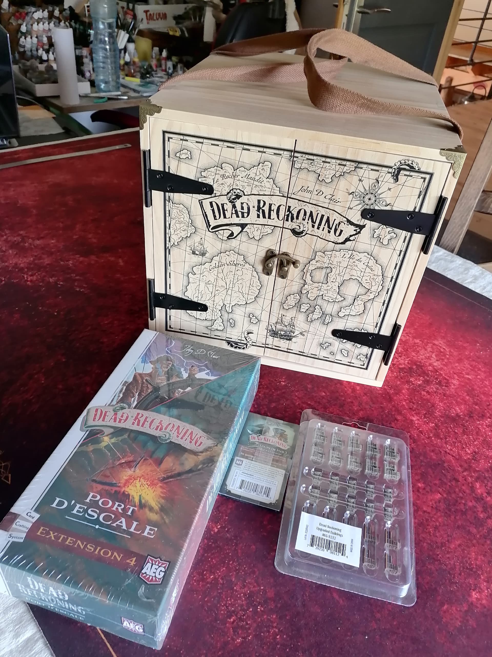 Du coup, je n’ai qu’une envie, me procurer Dead Reckoning. Mais j’arrive bien après la bataille (celle de la dernière campagne Kickstarter)… et aucune boutique à laquelle j’ai fait appel ne l’aura en stock (et j’en ai fait un paquet), pas plus que les extensions.