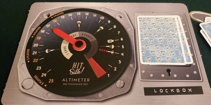Dans un avion sans pilote qui est en train de plonger vers le sol, les joueurs (des braqueurs) doivent décider à différentes altitudes (cf photo ci-dessous, vote à chaque icone de parachute) s’ils sautent ou pas. Sachant qu’il y a un parachute de moins que le nombre de joueurs, et plein d’objets permettant disons… des échanges musclés (seringue de poison, antidote, révolver, balle de révolver, menottes, liasses de billets…)
