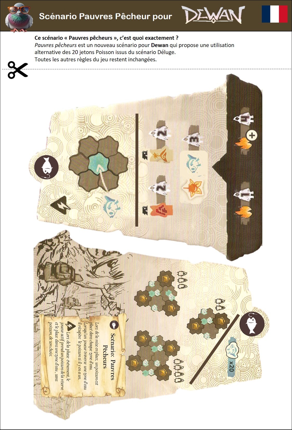 Et puisqu’on ne fait rien à moitié chez les Goodies, vous trouverez ci-dessous 5 cartes à imprimer, couper et mettre sous sleeves (à dos opaque ) qui serviront à sélectionner au hasard en début de partie sur quel scénario vous allez prendre du plaisir