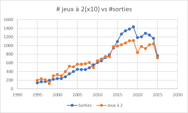 Bilan : jusqu’en 2014, une sortie sur 10 est un jeu à deux. De 2014 à 2024, c’est significativement moins.