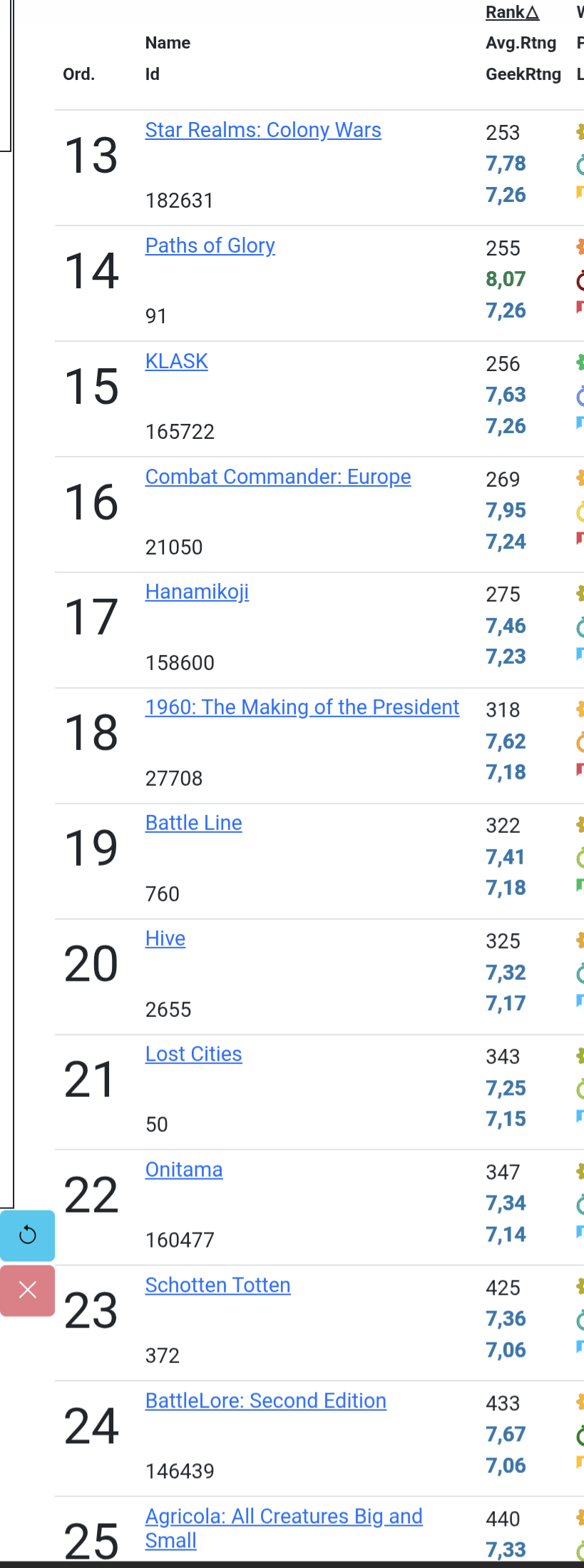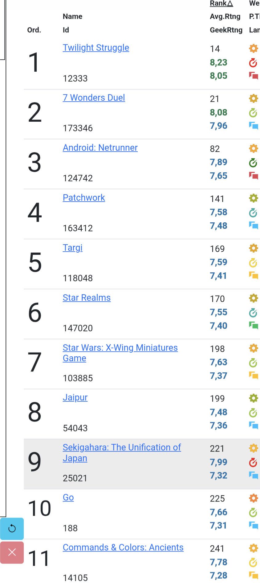 Tout à fait, les wargames sont une catégorie complètement à part (je réalise d’ailleurs que combat commander est beaucoup plus vieux que l’image que j’en ai…). Ils sortent à cause du critère de filtre “2 joueurs”. J’ai rajouté un filtre pour les virer, je vais poster ça.