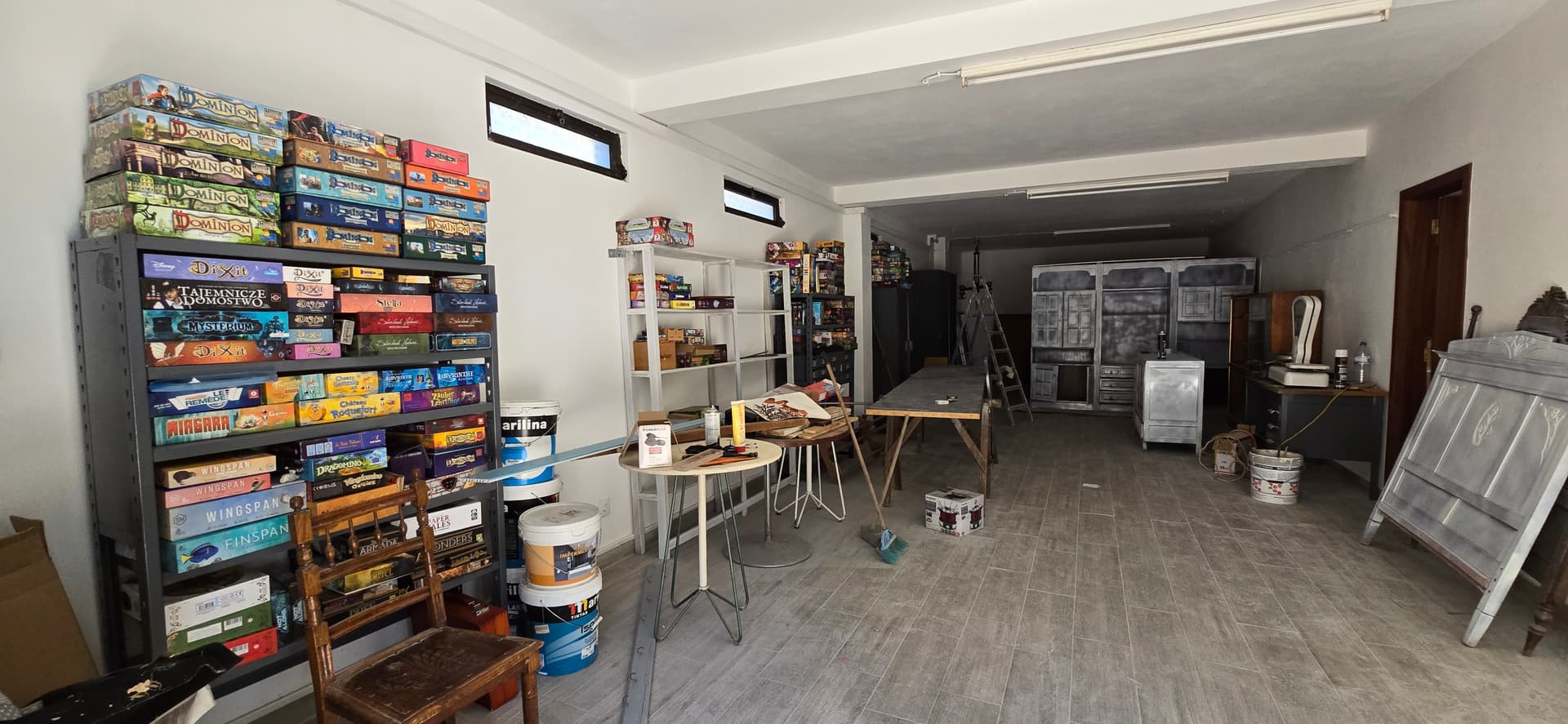 C’était un garage, il y aura en effet une porte vitrée, pour le moment c’est encore la porte de garage. L’espace chambre sera tout au fond, une kitchenette à droite à l’entrée, suivie de la salle de bain.