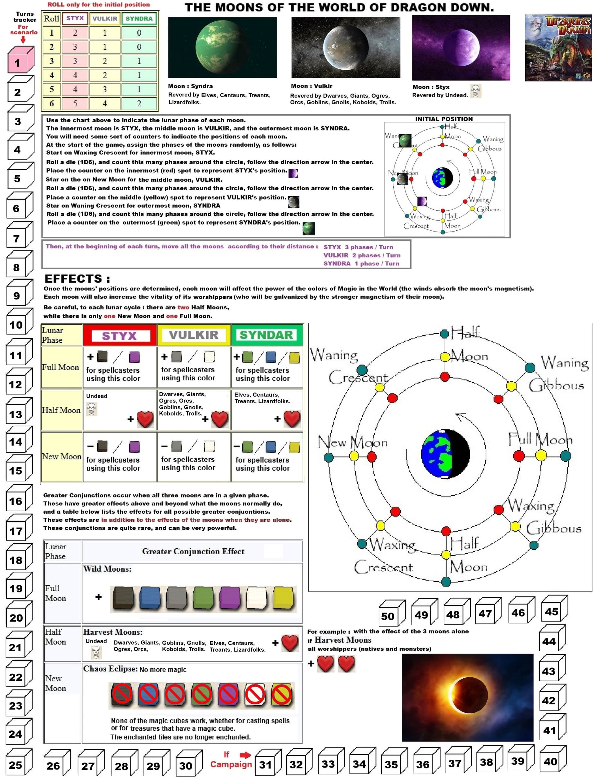 Pour compter les tours j’utilise ma dernière variante celles se servant des 3 lunes du monde de Dragon Down
