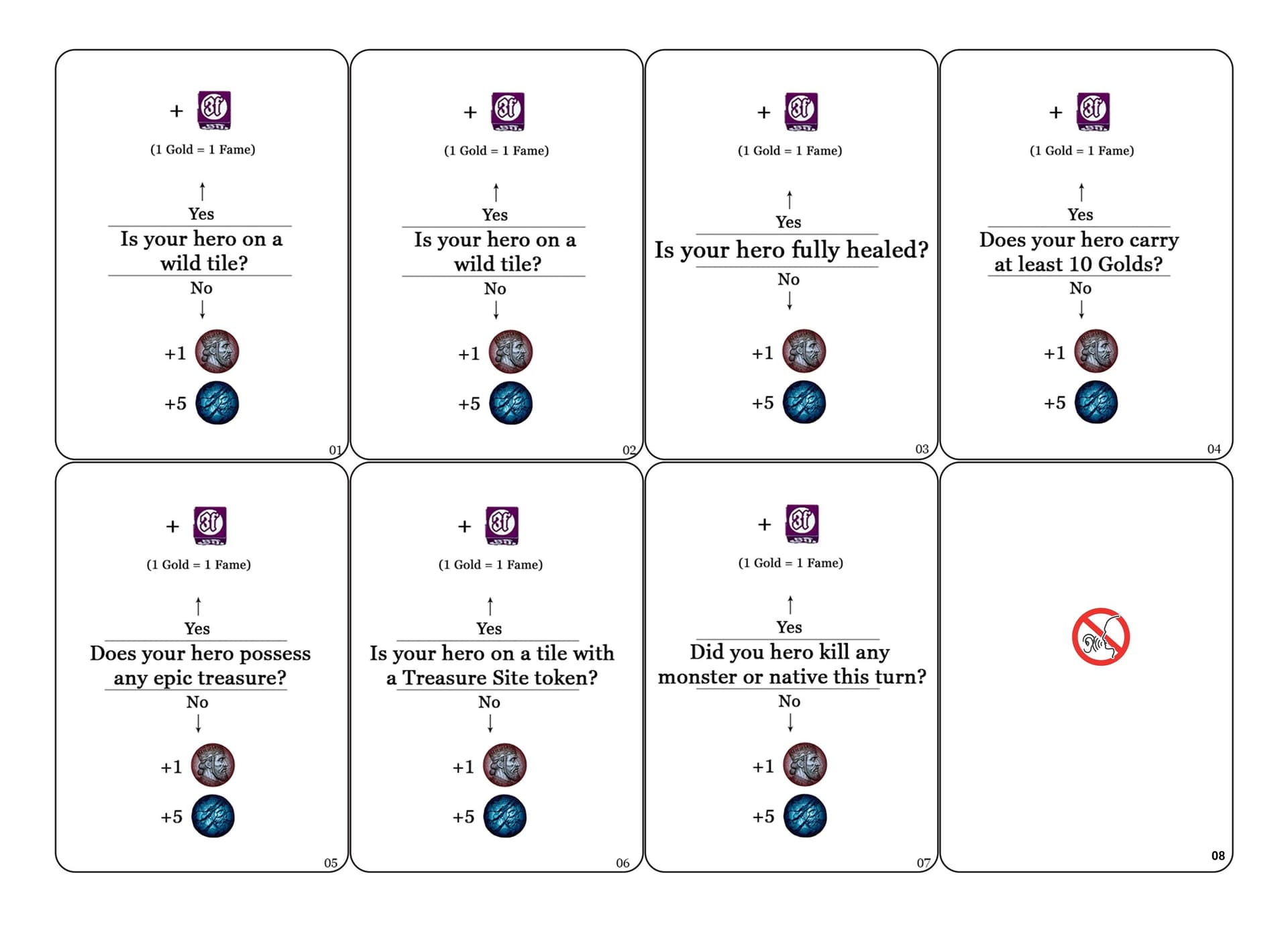 j’en ai choisi la moitié pour plus de crédibilité, comme celle où les objets / trésors / monstres errants lorsqu’ils apparaîssent sur votre tuile il faut jeter 1D6 pour savoir dans quelle clairière de la tuile ils apparaissent réellement (les tuiles ayant chacune 6 clairières) au lieu de la règle de base qui simplifie et fait tout apparaître sur votre héros directement, plus rapide mais moins immersif.