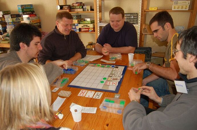 Ce jeu combine les règles du Poker (Texas Hold’hem) et celles d’un jeu de placement et de majorité.