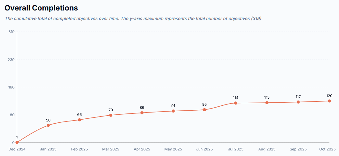 Ensuite, quand on regarde le fonctionnement de ce “traqueur”, on se rend compte que chaque sujet ne possède un de ces trois status: Not started, in progress, et completed. Si vous vous y étiez intéressé, vous auriez probablement remarqué que tout ce qui est défini comme “in progress” compte comme un truc “à moitié complété” dans le calcul.