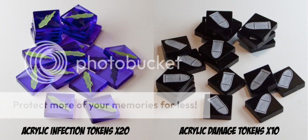 vous verrez la photo du backer token et aussi l’option de prendre des pions d’infection et de damage en acrylic (30 pions au total) pour 5 à 8 dollars de +.