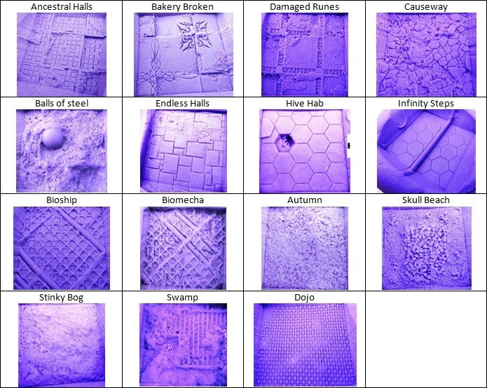 => Nous avons donc le choix entre des textures existantes ou nouvelles, sur des pads de 50mm / 2" de côté, pour 5£ pièce (+ port).