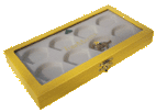 C'est une boite en bois, avec un couvercle transparent et accueillant les figurines dans des compartiments prévus pour. J'ai des photos si vous voulez je les transfère par mail.