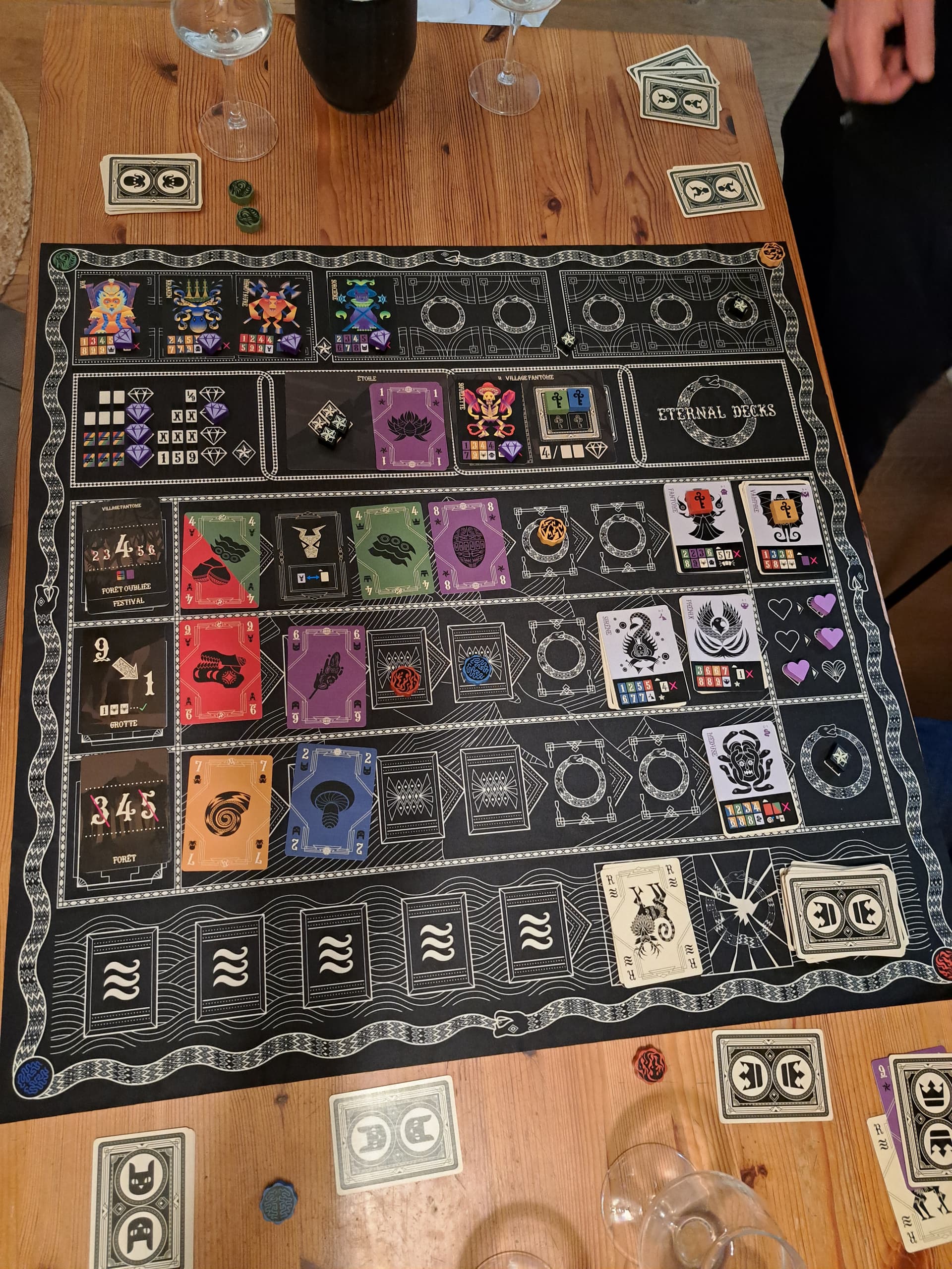 C’était très bien. Nous avons beaucoup aimé le mini-jeu des motifs à reconstituer. Et aussi la carte contrainte du sentier Labyrinthe. Ça nous a demandé de nombreuses concessions, bien réfléchir à nos choix. Notamment un, inédit : faire attention à ne pas remplir un sentier alors qu’on le pouvait, parce qu’on ne voulait pas vider la ligne de cartes présentes, utiles à la constitution du motif.