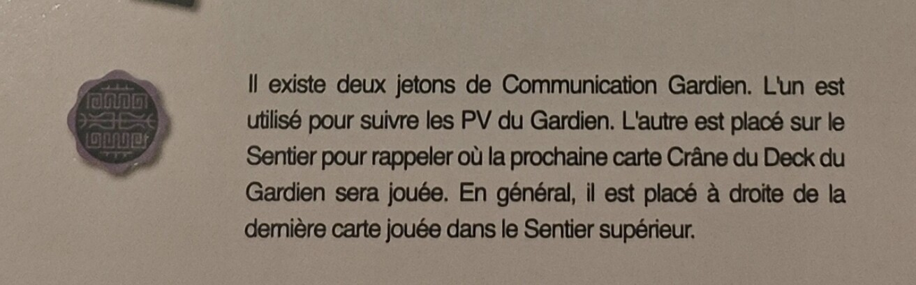 Pour moi le jeton gardien sur le sentier est plutot un rappel pour dire: il faut d’abord jouer la carte sur le sentier supérieur, mais effectivement, si cela n’est pas possible, il faut jouer le crane dans le sentier médian, et si pas possible, dans le sentier inférieur.