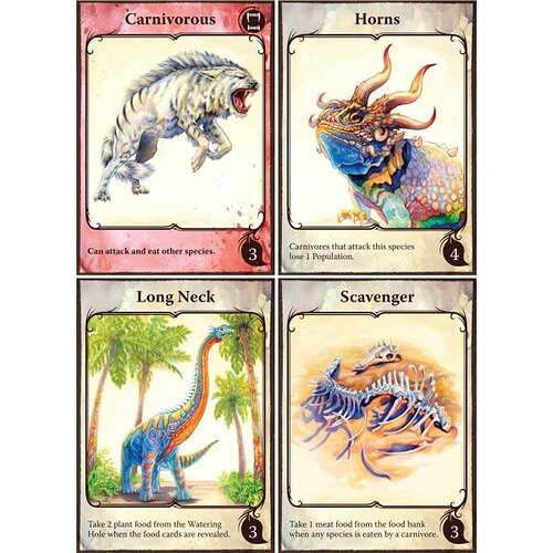 Les règles sont très simples (on explique en 3 minutes) mais la richesse vient des cartes Trait qu’on assigne à ses espèces et qui peuvent donner lieu à des combos très intéressant.
