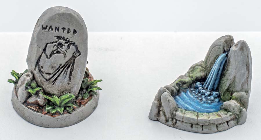 (Les figurines maison et fontaine représentent les pts de vie du village).