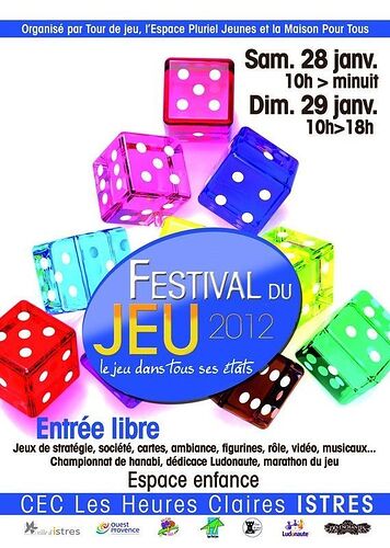 J’ai le grand plaisir de vous informer que le premier tournoi, dit aussi championnat de France, d’Hanabi aura lieu dans le cadre du festival d’Istres des 28 et 29 janvier 2012.