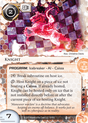 Par contre, les cartes Caissa, c’est une vraie nouvelle mécanique. Je viens de les voir dans le nouveau data Pack (le Pion, la Tour), mais j’ai pas tout tout compris (le Pion quand il arrive sur la derniere glace, il peut permettre de poser une Tour, okok, mais quel intérêt de cette carte si ce n’est de s’économiser le coût d’une Tour, en ajoutant des Pions dans son jeu qui peuvent mettre pas mal de tours pour une Tour? … hum, c’était nul ok…)