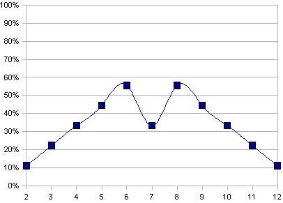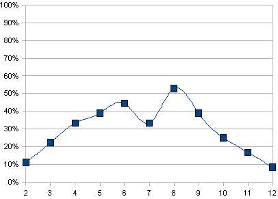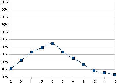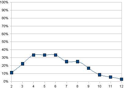 On voit que le 7 est malchanceux contrairement au système de dé classique.