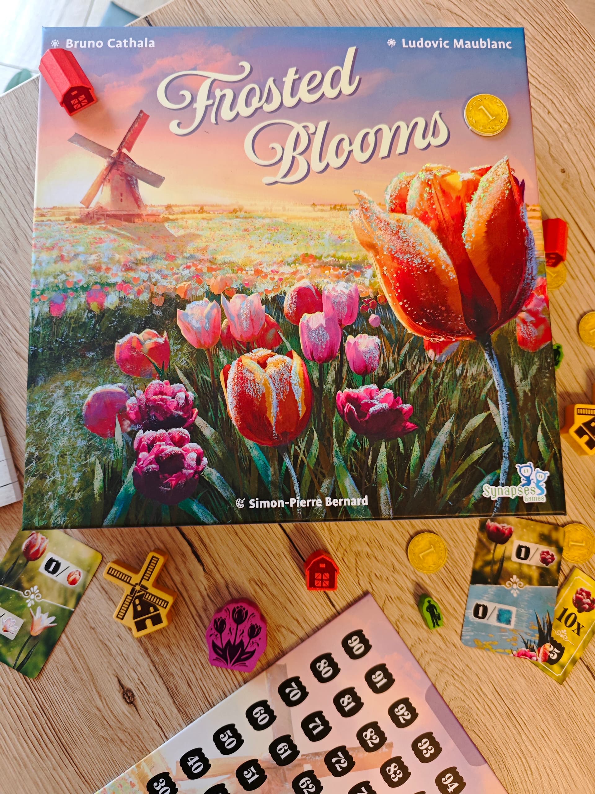 Les tulipes commencent à colorer le jardin. Le moment idéal pour ouvrir la boite de Frosted Bloom, un jeu de Bruno Cathala et Ludovic Maublanc, illustré par Simon-Pierre Bernard chez Synapses Games.
