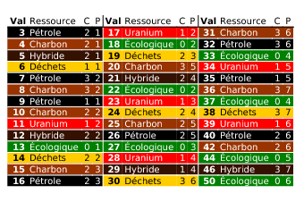 * attention aux centrales au charbon : ce sont les plus intéressantes dans la plupart des cas, mais si il y en a trop en jeu, des pénuries peuvent survenir en fin de partie, transformant facilement une première en dernière place au classement