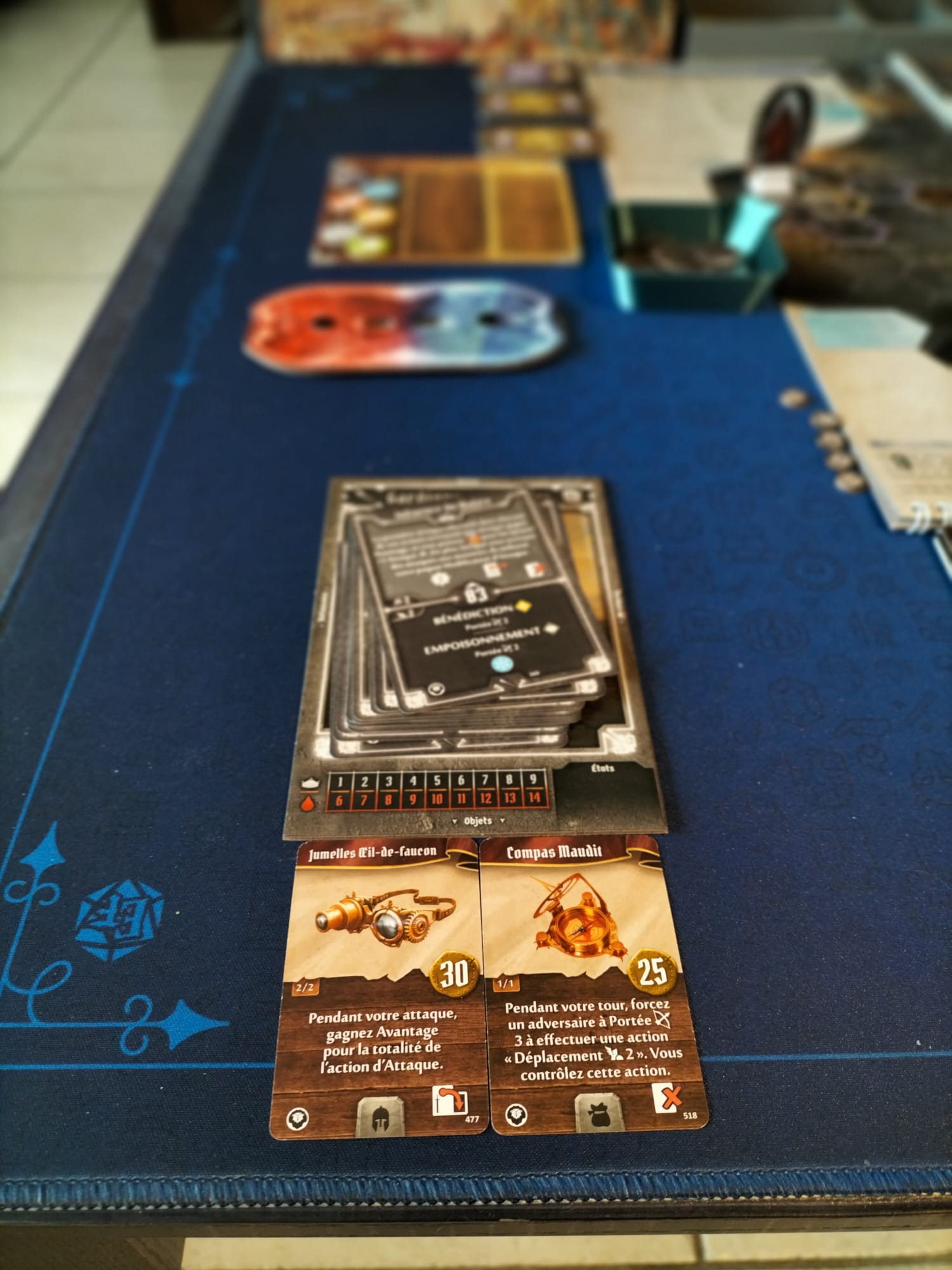 PS : l’icône “perdue”, c’est juste pour éviter que les joueurs utilisent la carte, la défaussent à un moment, et la rejouent plus tard pour rechoper 2 pts d’exp.