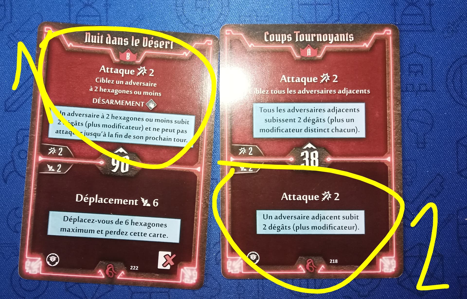 Et par conséquent si je joue ces 2 cartes attaques, je tirais 2 cartes modificateurs pour chaque attaque.