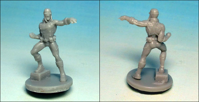 Les figurines définitives seront en couleur afin de bien les différencier sur le plateau de jeu : bleu pour le Sgt Freedom, orange pour Super Nova, noir pour Adam Spell et jaune pour Golden Boy !