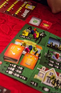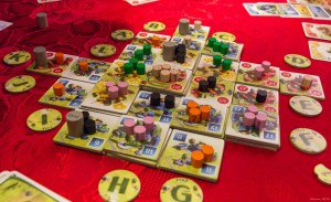 Finalement, j’arrive à me débrouiller au cours de la partie. J’ai trouvé le moyen de tourner sur mes trois notables en ayant une majorité me permettant de monter à 2 sur l’échelle de notables, et pour activer le troisième, j’ai construit un bâtiment sur une action notable assez bien placée dans la zone centrale.
