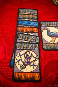 Targui : quelques parties. C’est clairement un jeu intéressant et bien équilibré. La grille de jeu est très bien pensée et offre de nombreux choix souvent cornéliens (prendre la carte intéressante ou bloquer l’adversaire quitte à ne pas prendre un certain nombre de ressources…). L’or est assurément à ne pas négliger. Quelques cartes tribus ont cependant un impact important (la Targuia qui permet de compter 4 points pour 2 lignes maximum constituées de symboles tous différents, la carte oasis qui permet de ne pas subir les pénalités des raids). Très bon jeu donc.