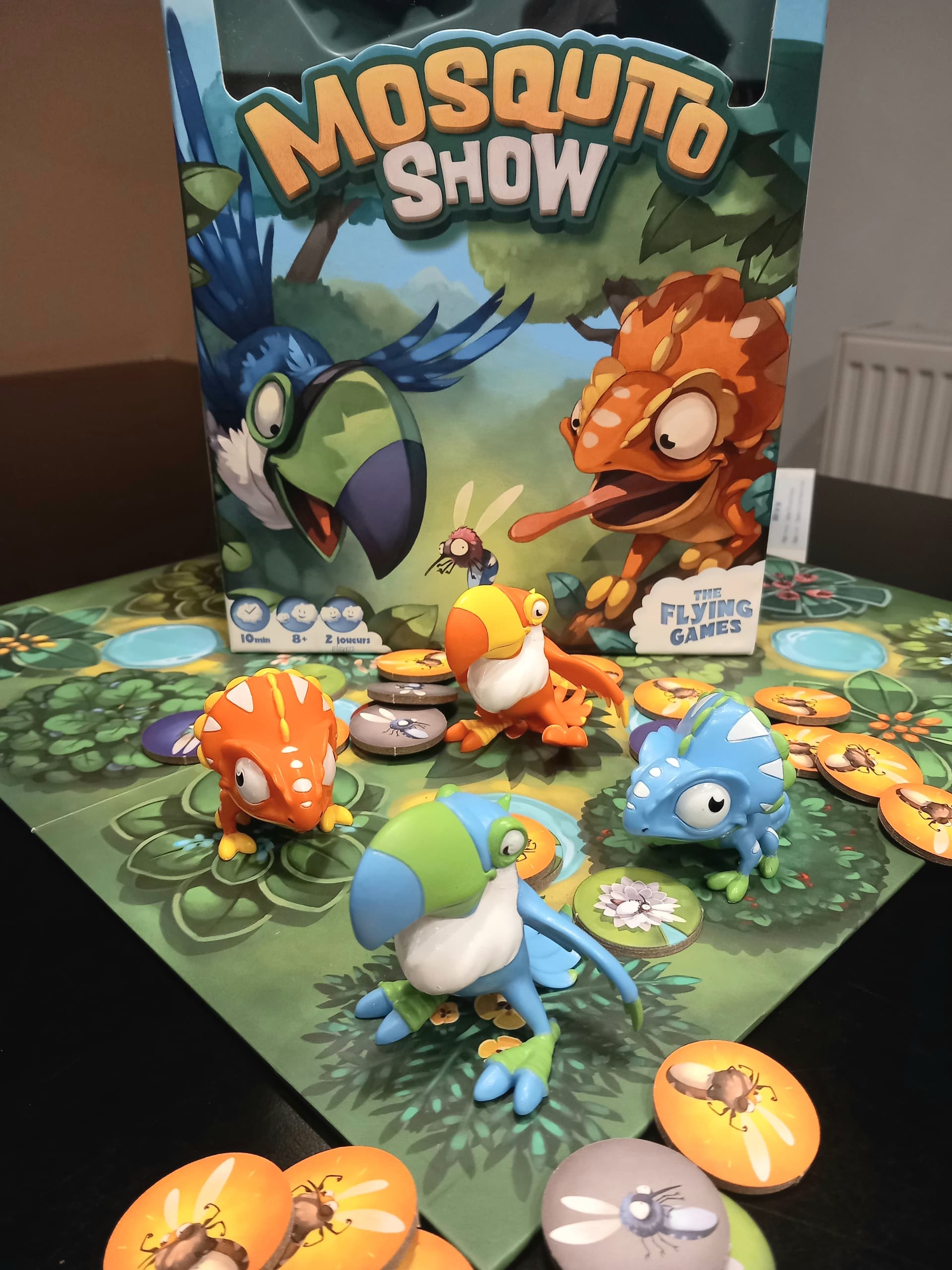 C’est simple, malin et rapide. On commence par chasser les moustiques dorés, et on comprends au fil des parties qu’il faut surtout manœuvrer pour éviter le blocage. Bien que simple, la mécanique est finement équilibrée ( selon mes critères en tout cas). Certains jetons restent cachés et apportent une touche de hasard bienvenue…
