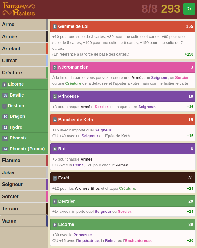Hier, nous nous déplacions en train, j’en ai profité pour initier mon frère à Fantasy Realms. Il a bien aimé (prise en main facile pour lui puisqu’il joue souvent à Magic: the Gathering), malgré les 5 défaites.
