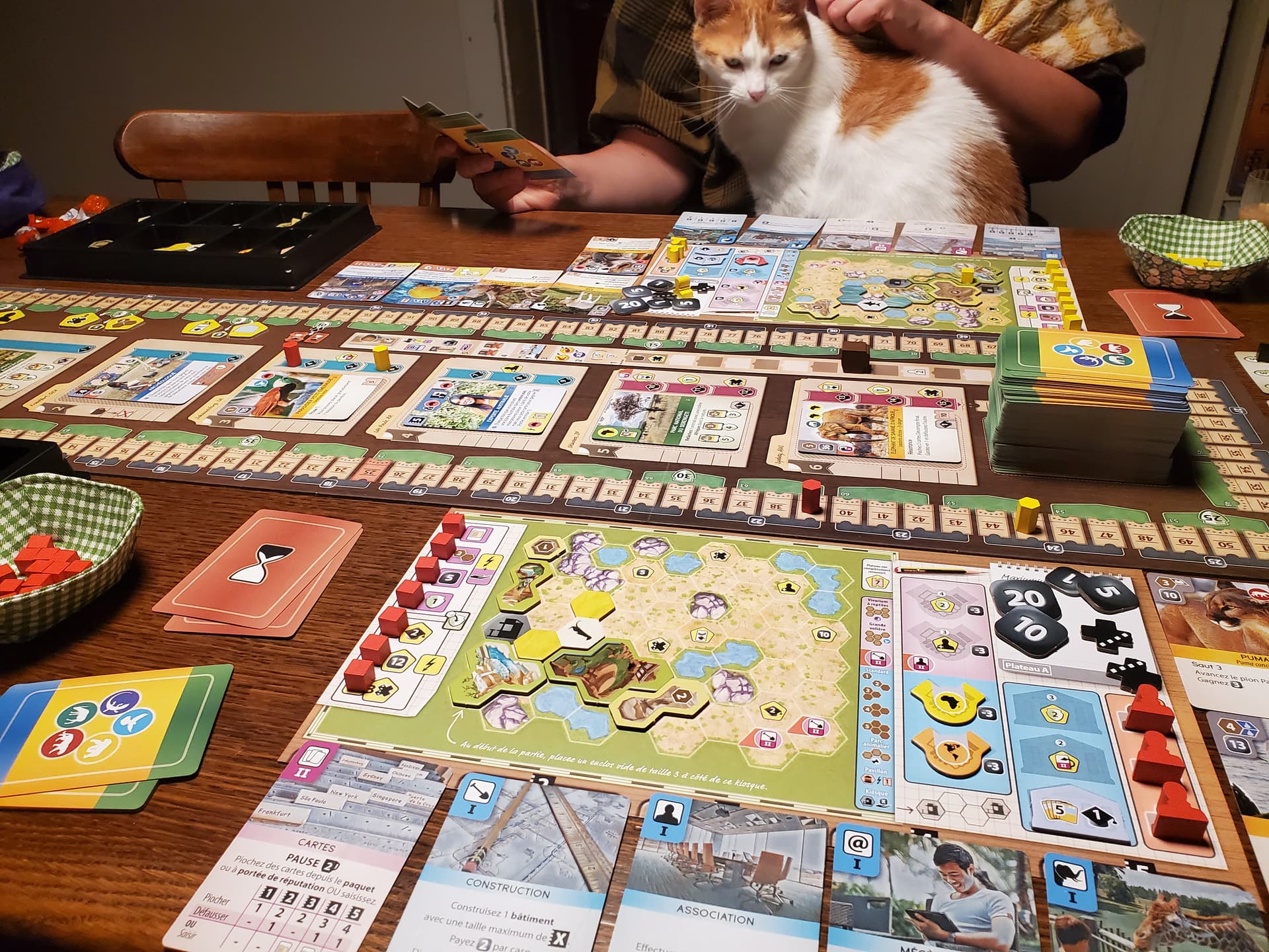 Elle m’a proposé de jouer à Ark Nova pour la première fois. J’ai redoublé d’efforts pédagogiques pour l’explication des règles.