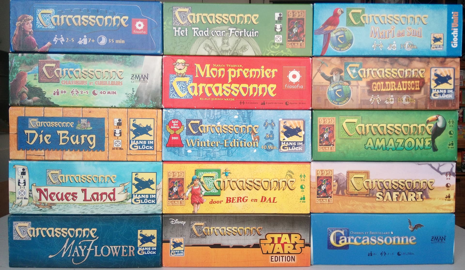 Non, un an de Vinted et des versions en anglais, allemand, néerlandais, français et italien. Toutes trouvées entre 7,5€ et 28€. Je viens juste de récupérer les deux qui me manquaient : hiver et Roue de la fortune