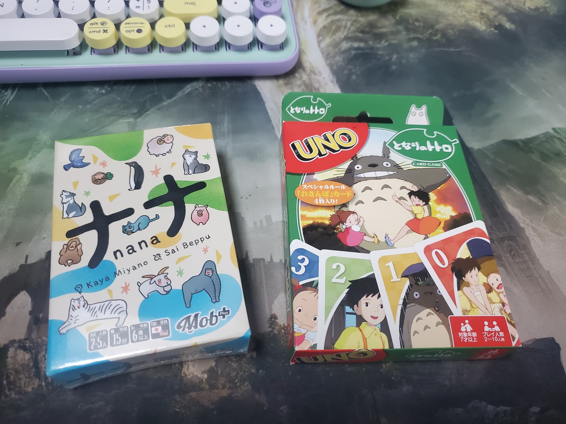 De retour du Japon, des amis m’ont rapporté ce mignon Uno Totoro mais surtout la version japonaise de Trio, Nana, avec des illustrations troooop choupi ![]()