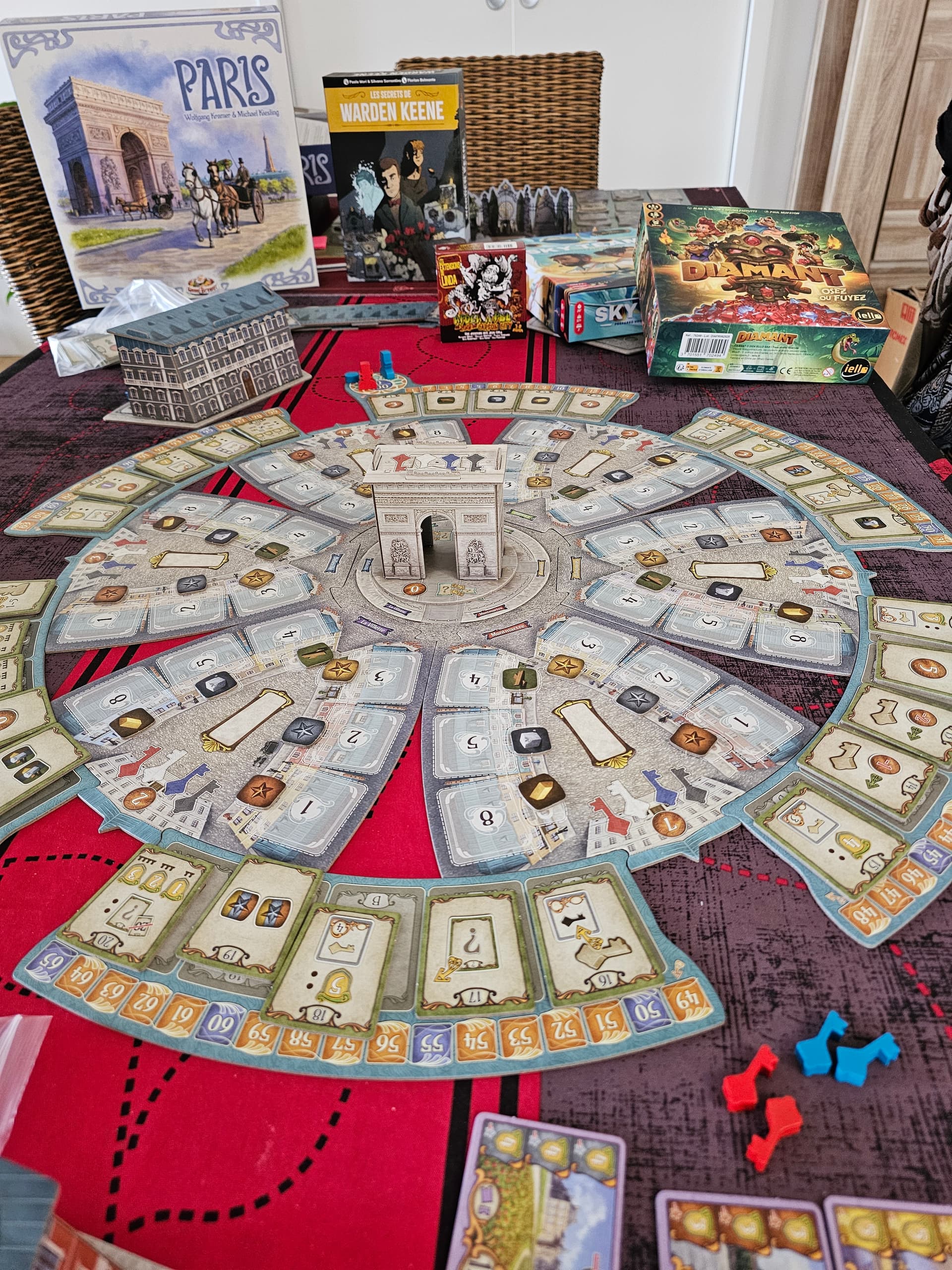 Paris en grosse promo, Warden Keene en cours de résolution, Skyteam crash test for dummies. Diamant découvert chez l’ami @thierry-lefranc-0 et bien syampa pour jouer avec des non joueurs jusqu’à 8 ! Les extensions Linda pour compléter Apocalypse au Zoo de Carson City, et c’est déjà pas mal !