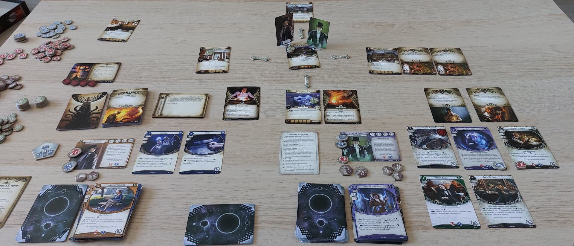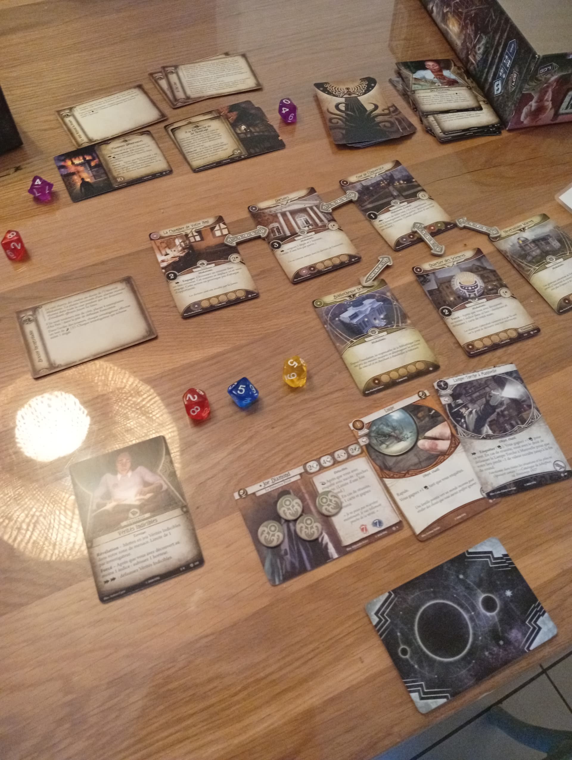 Je commençais à me noyer sous les cartes et les investigateurs du chapitre 1, et le jeu avait du mal à retrouver le chemin de ma table. Là, ce reboot m’allège considérablement l’esprit, je prends à nouveau du plaisir à découvrir des cartes, à m’adapter au tirage, à croire que je pourrai m’en sortir, ah et puis en fait non, ah et puis en fait si…