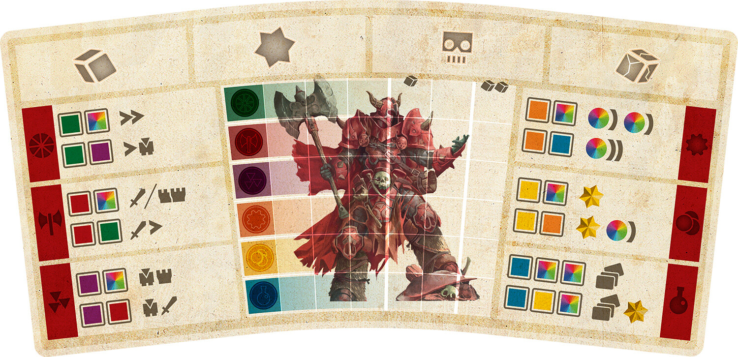 Au début, vous commencez avec un cube de chaque couleur dans votre sac. Chaque tour vous en tirerez 3 ce qui déterminera vos actions du tour. Mais plus vous vous perfectionnerez dans une discipline, plus vous allez acquérir de cubes de la couleur correspondante, et donc plus vous pourrez être puissant dans ce domaine.