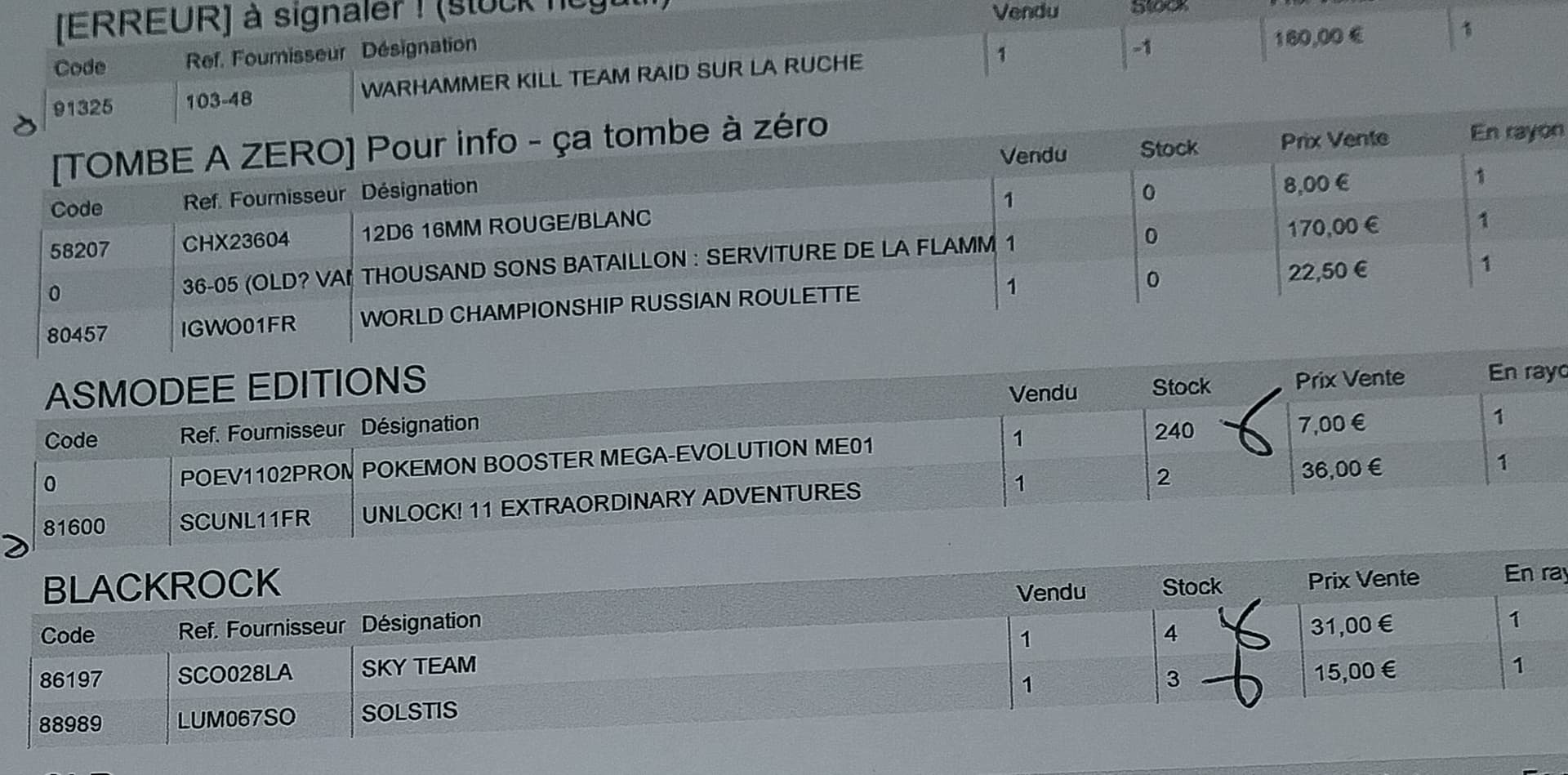 Toutes les semaines, il passe des commandes et chaque journée un réassort est généré par un logiciel. Tout ce qui est à 0 est à commander en théorie. Il affine ensuite par son vécu du jeu en boutique et grâce au logiciel lui indiquant si le jeu se vend mal en précisant le temps en rayonnage.