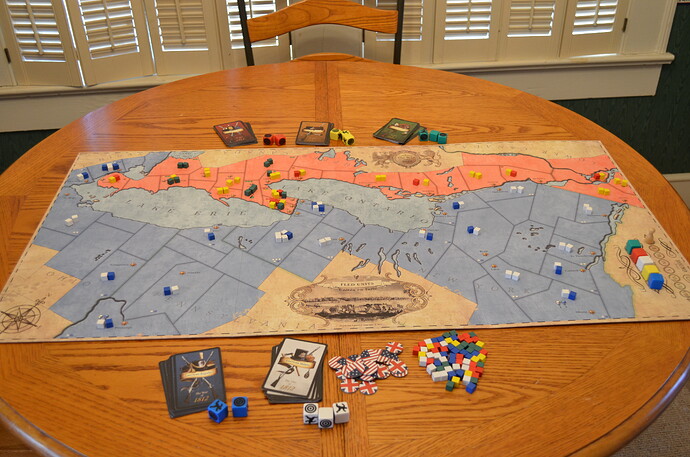 1812: l’invasion du Canada m’a l’air pas mal, c’est plus long quand on joue à 5 parce qu’on discute, mais à 2 ça doit largement se boucler dans les temps, et c’est assez light au niveeau des règles tout en ayant des choix stratégique et tactiques intéressants.