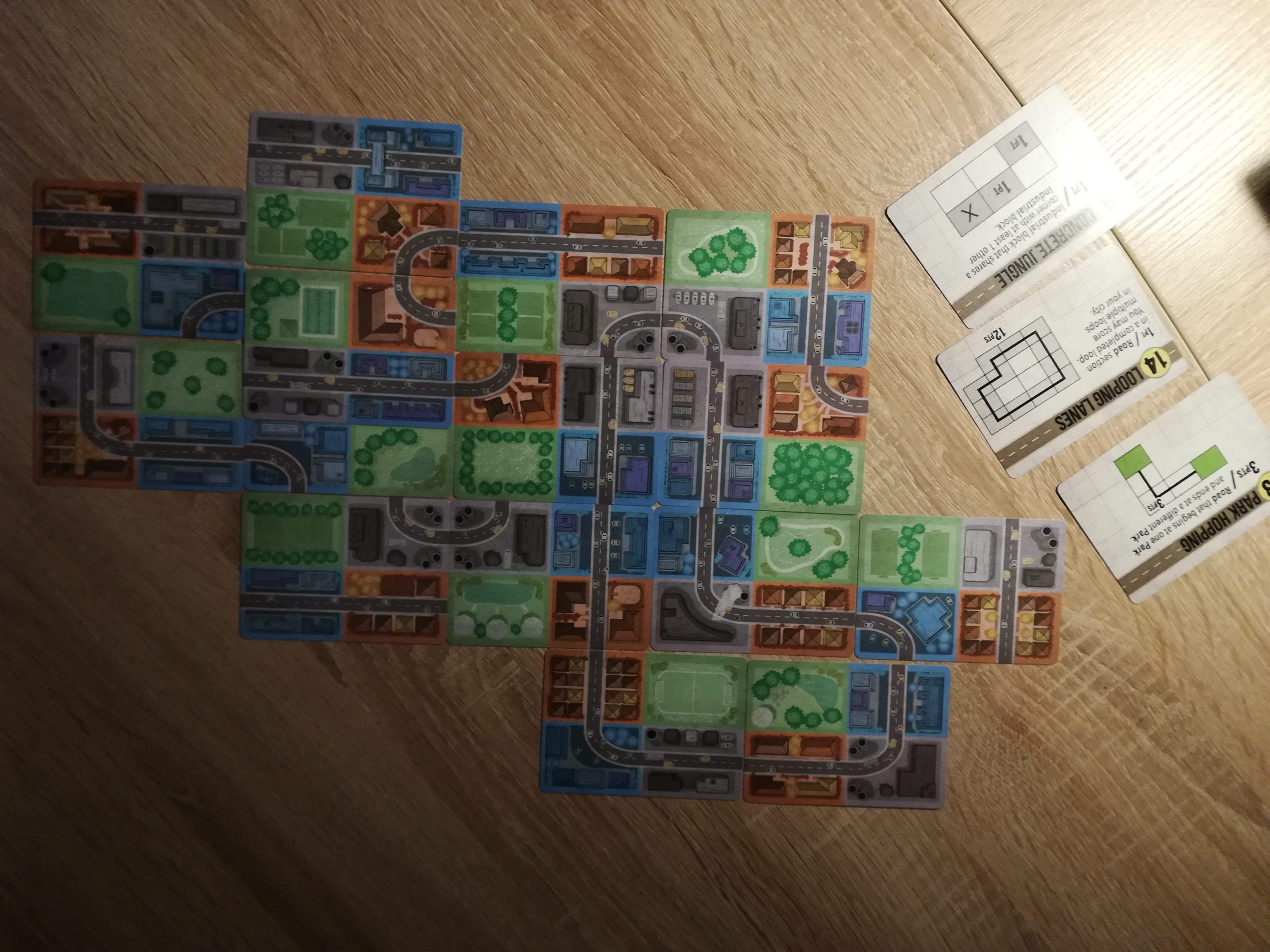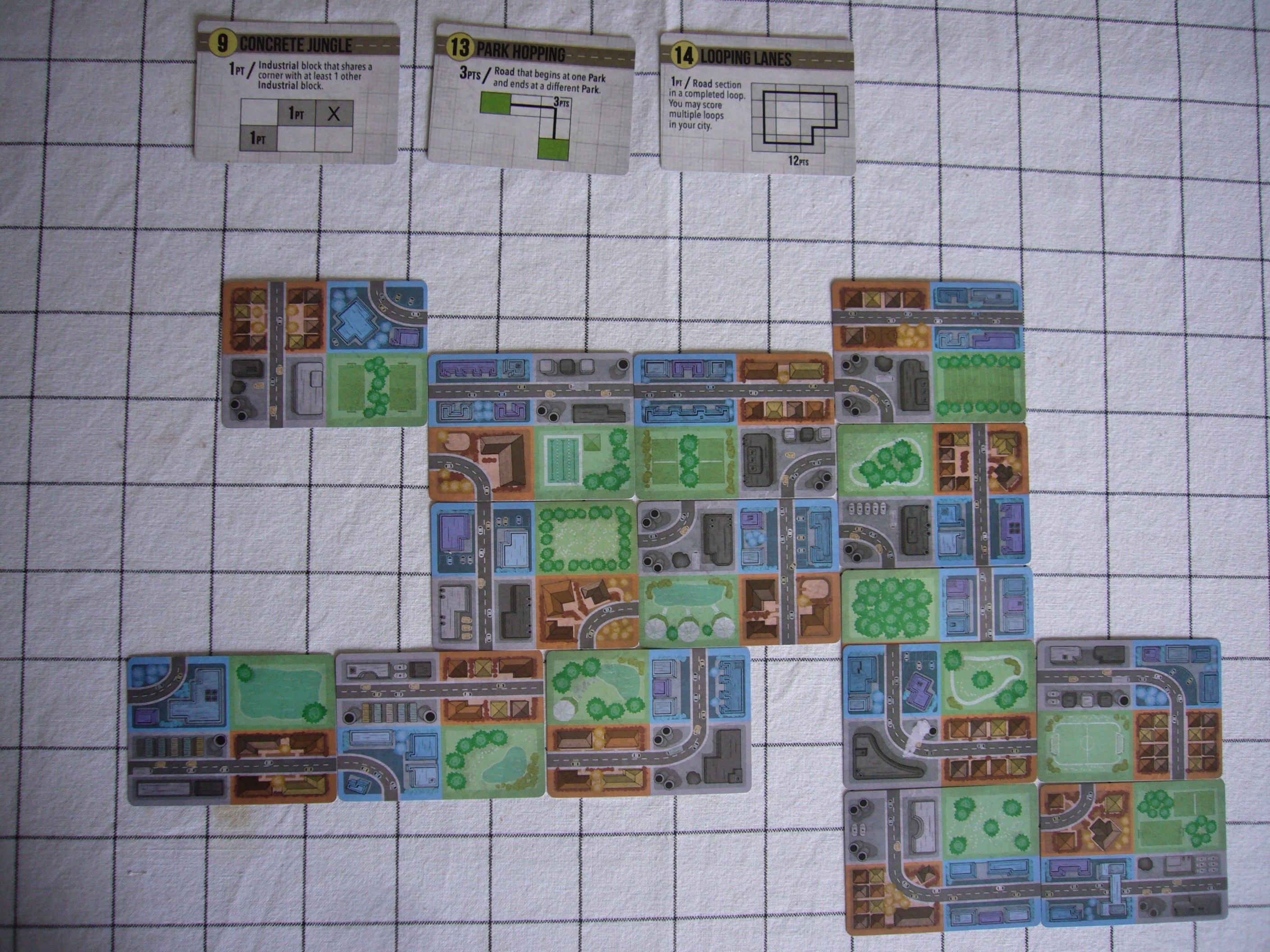 Puis j’ai retenté et j’ai beaucoup mieux réussi avec une boucle de 20 blocks + 5 routes reliant des parcs, pour un total de 43 points / 36.
