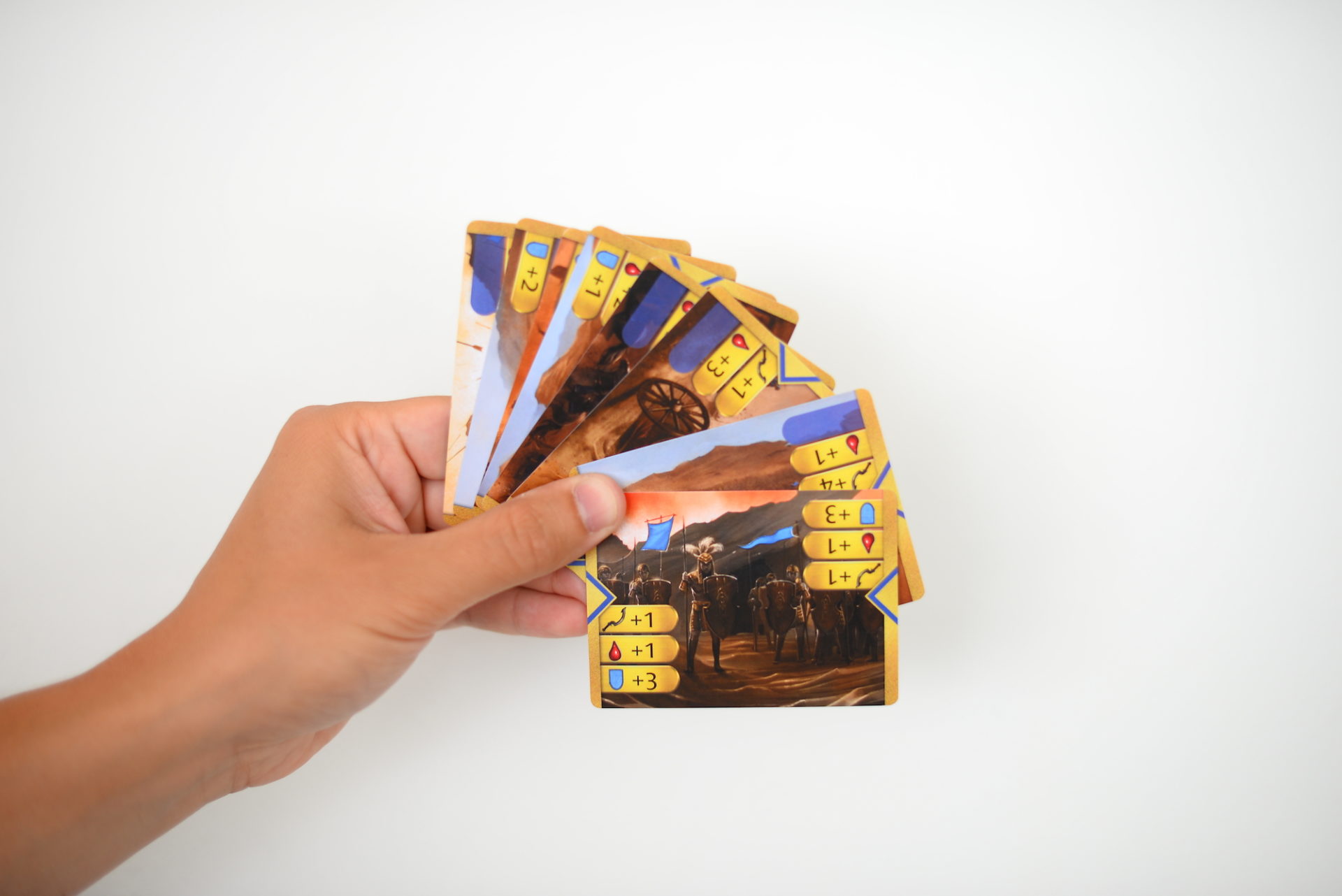 - Kemet : chaque joueur a en main le même set de cartes, qui ont différentes valeurs de Force, défense, etc… et on ne récupère sa main de carte que quand elles ont toutes été posées. Il y a donc un peu de guessing rigolo.