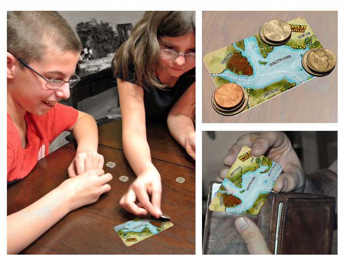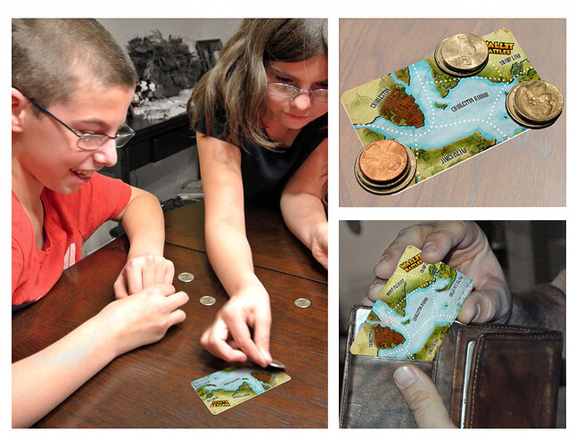 Dans la lignée des nano games financés récemment, le jeu se joue avec une seule carte et des pièces comme le récent Coin Age qui a tout explosé sur KS. L’auteur de Wallet Battles se défend que mis à part le format et le matériel, son jeu n’a rien à voir avec Coin Age. A vous de juger, moi j’ai pledgé pour 3$ ! http://www.kickstarter.com/projects/206 … me-board-g