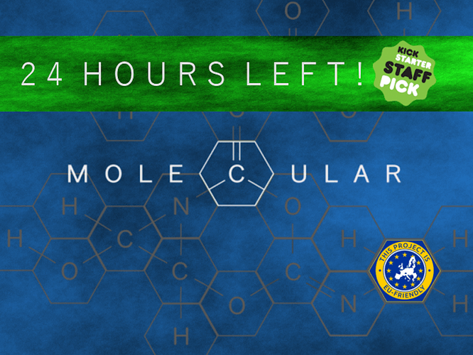 Obviously we’re still working hard on getting all the finer details of each card, hex and rules section completely finished. In that vein, we’ve just set up a Board Game Geek page for Molecular (very work in progress) where soon we’ll have the rules sheet uploaded so you can critique every little bit of it at will (which, honestly, is an invaluable thing for backers to help with!)
