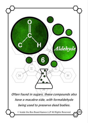 We’re now looking at how to use colour on the hexes (to colour code them by element to make Functional Group recognition easier) as well as Functional Group and Effector cards (to show which set they are a part of). We’re working on a few designs and we’ll get back to you with our ideas so you, the people wanting copies of Molecular, can decide!For now, here’s a REALLY rough concept for the FG cards with spangly colourisation: