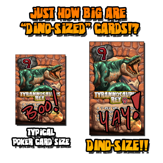 Un petit jeu qui parle de dinosaure, alors forcément, je suis là (un peu tard par contre) : Pas de EU Friendly, jeu pas cher ($10) mais $10 de frais de ports en plus. Y’a une version pour $38 fdpi avec le tapis de jeu. Sinon, c’est “juste” 54 cartes, mais format géant.