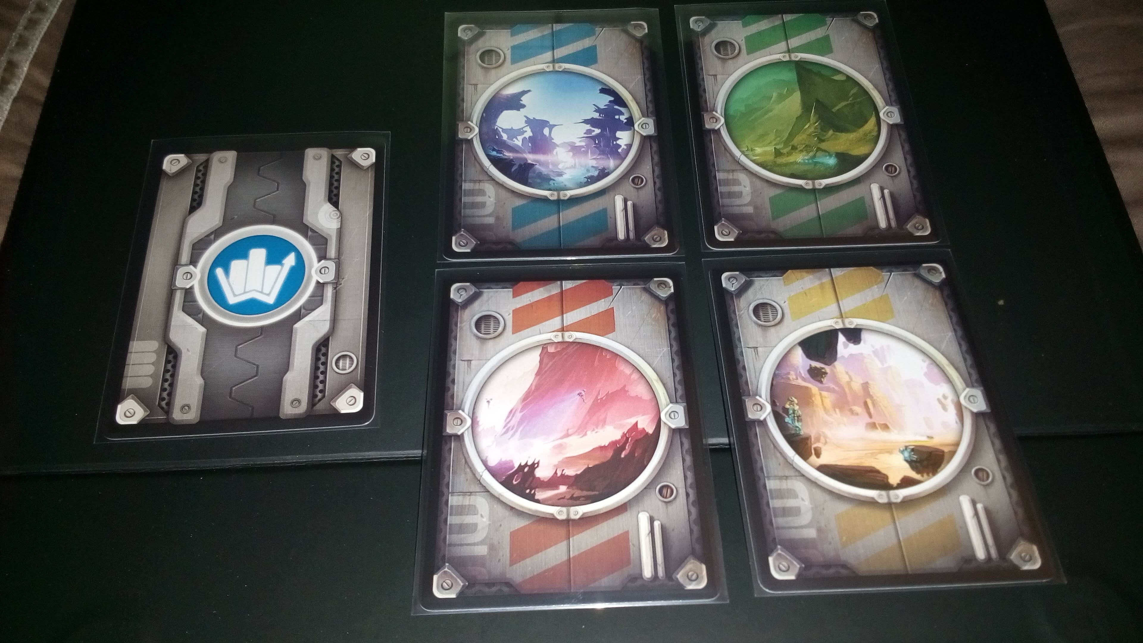 Il y a 5 dos de cartes différents. Les cartes Marché financier et les cartes Planète des joueurs (4 couleurs).