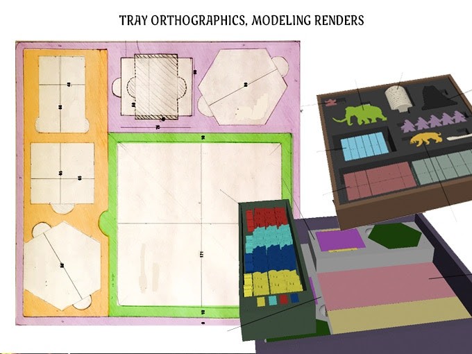 Here’s a peek at the tray making process. More to come on this as we work with the production teams. You’ll notice we’re making room for the deluxe box INSIDE the standard box. (what??!). Yes.