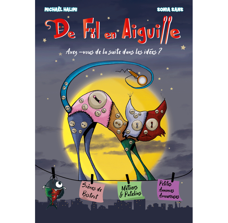 Je vous présente De Fil en Aiguille (DFEA), un jeu de guessing publié à compte d’auteur indépendant, illustré par Sonia Sans, soutenu & distribué par Paille Editions.